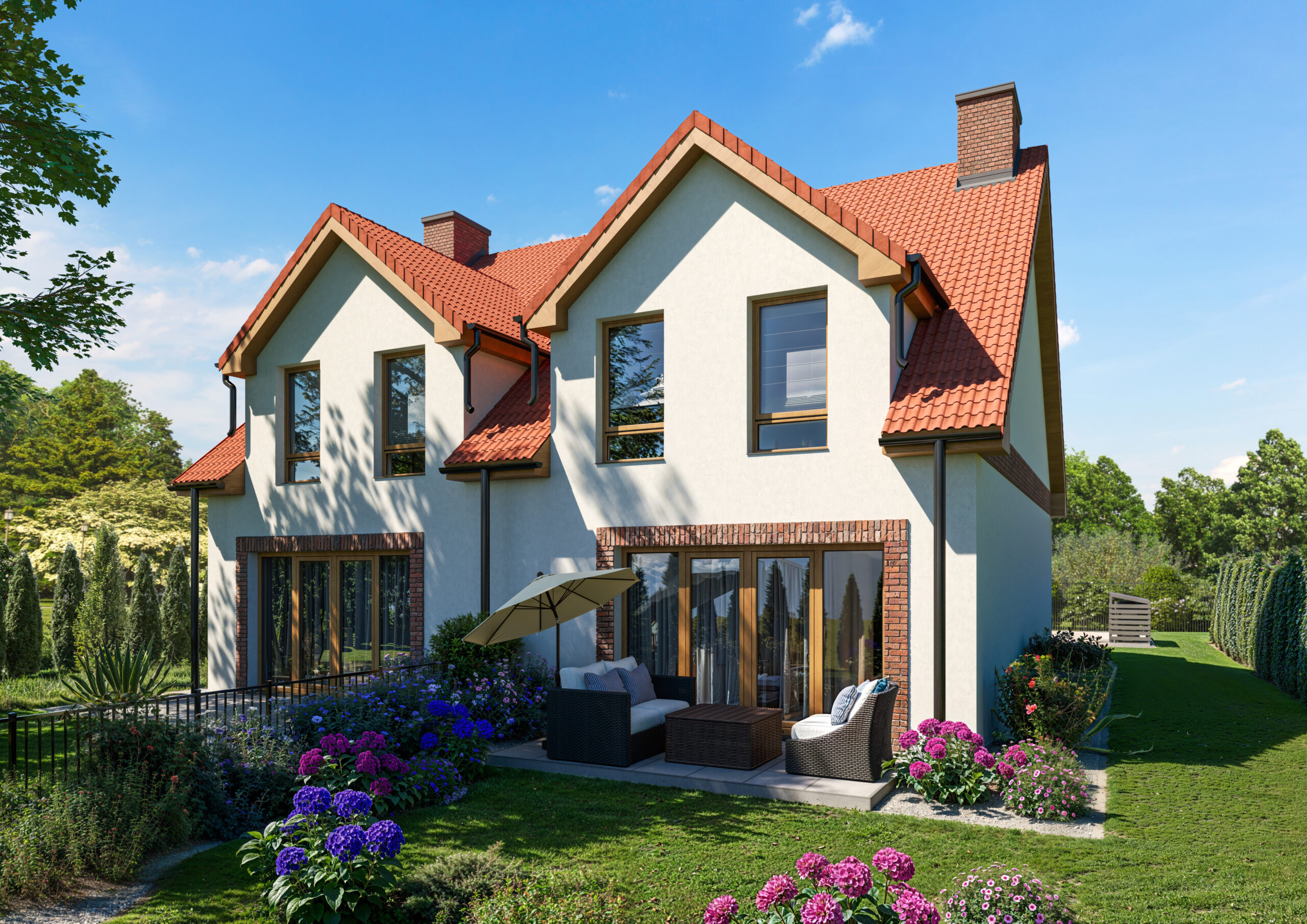 Powstają tu dwa domy w zabudowie bliźniaczej, z poddaszem użytkowym, niepodpiwniczone. Bryła budynku jest tradycyjna, o prostej formie przestrzennej z klasycznym podziałem funkcji wewnątrz domu. Kolorystyka domów jest nawiązuje do kultury regionu.